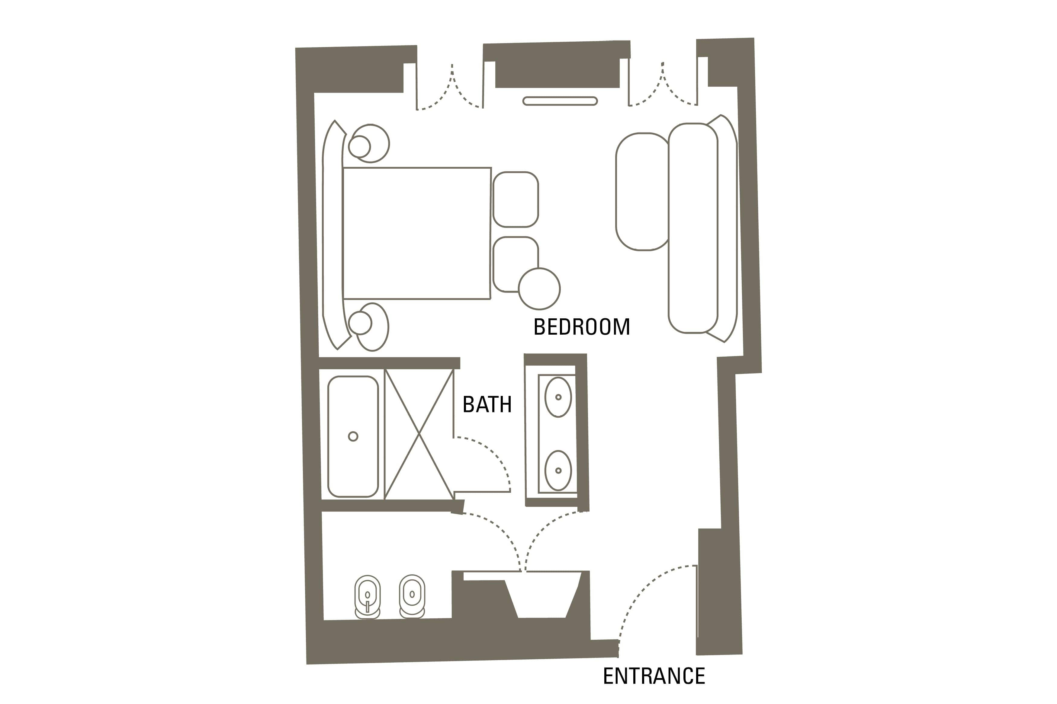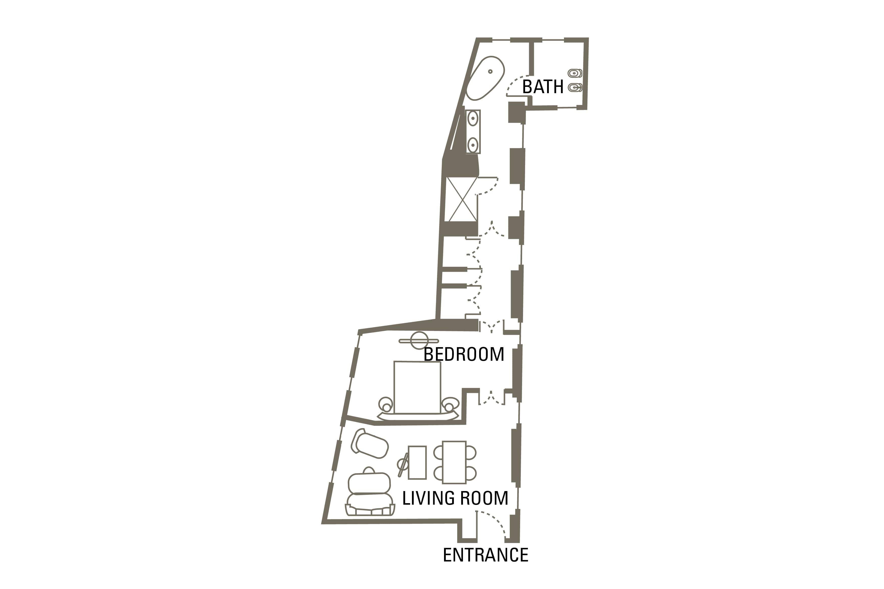 Esta elegante suite ofrece un ambiente sofisticado para el entretenimiento. El dormitorio principal es un espacio privado junto al que se encuentra un espacioso cuarto de baño de mármol italiano. Una zona independiente de estar proporciona espacio para relajarse o trabajar.