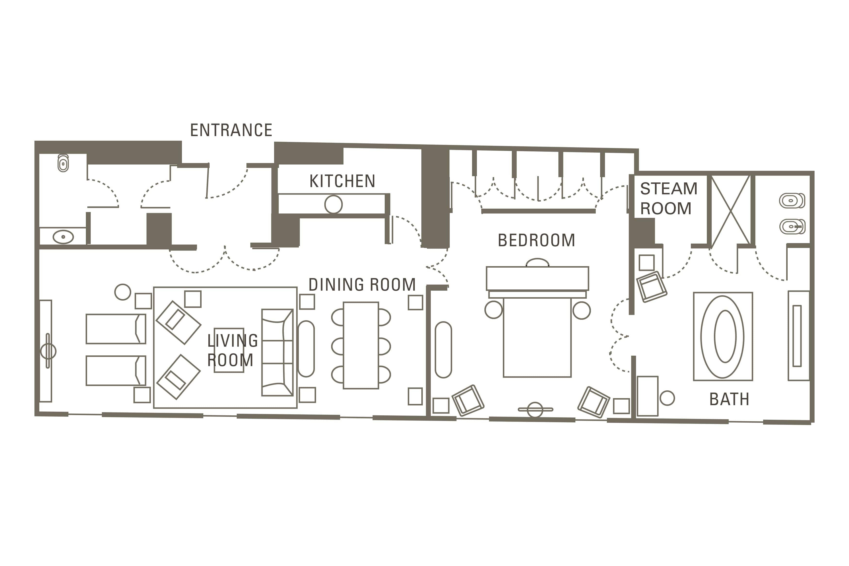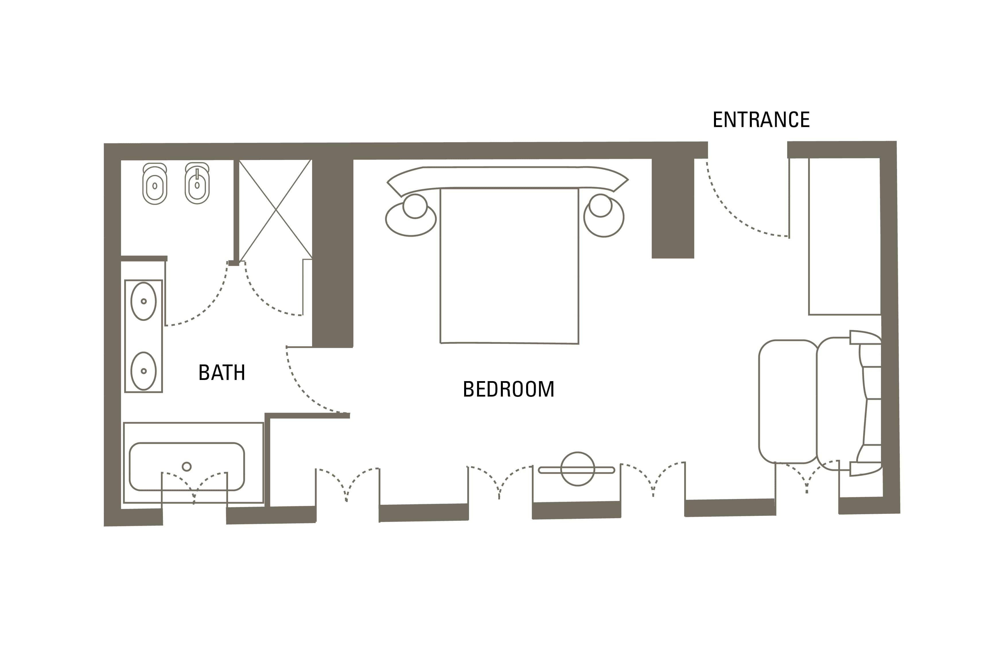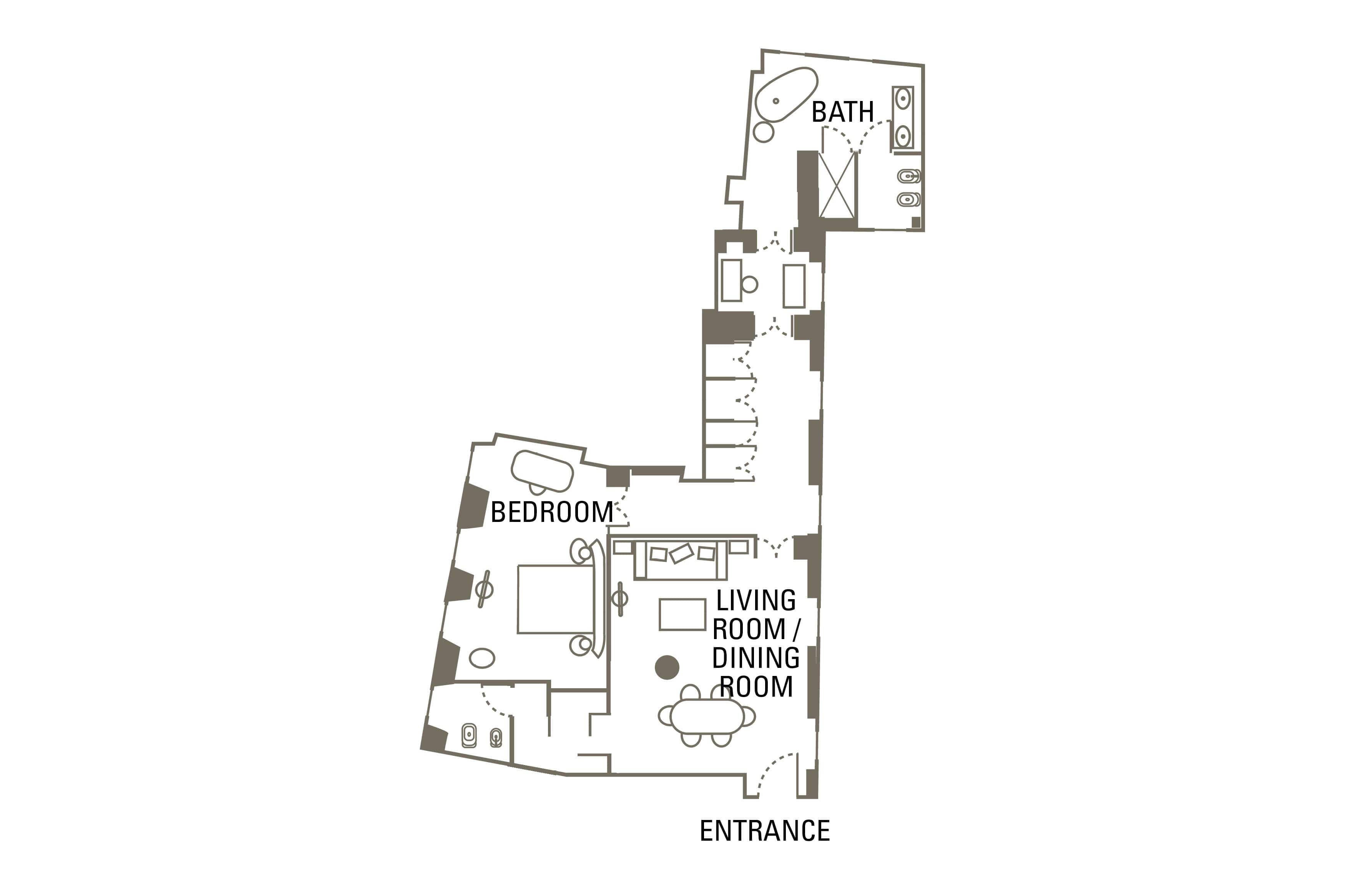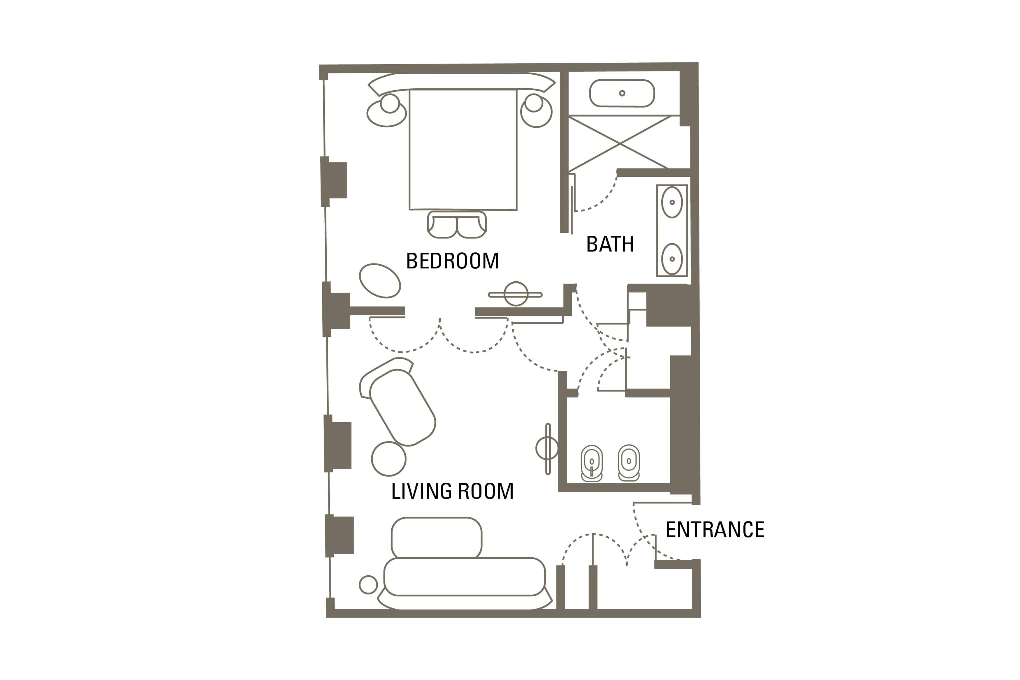 Con preciosos toques como los armarios de nogal, los suelos de madera y el mobiliario de diseño, estas generosas suites cuentan con un dormitorio principal y una sala de estar muy espaciosa. Un cuarto de baño de diseño tipo spa complementa la experiencia relajante.