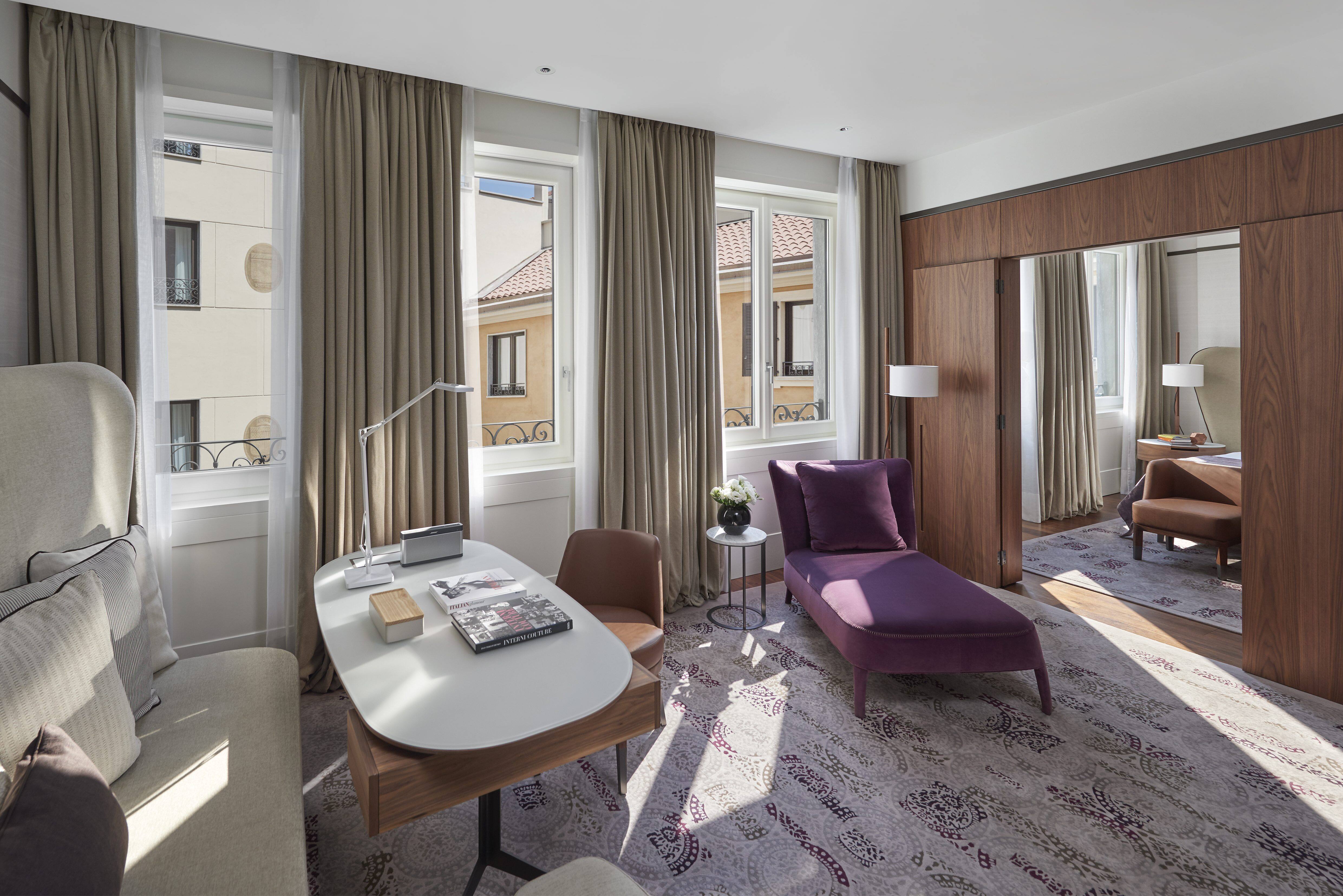 Estas preciosas suites incluyen un dormitorio principal con sala de estar y un gran cuarto de baño de mármol. La elegante decoración, que brinda un tranquilo retiro del ajetreo de la ciudad, refleja la calma y el lado neutral del estilo milanés clásico.
